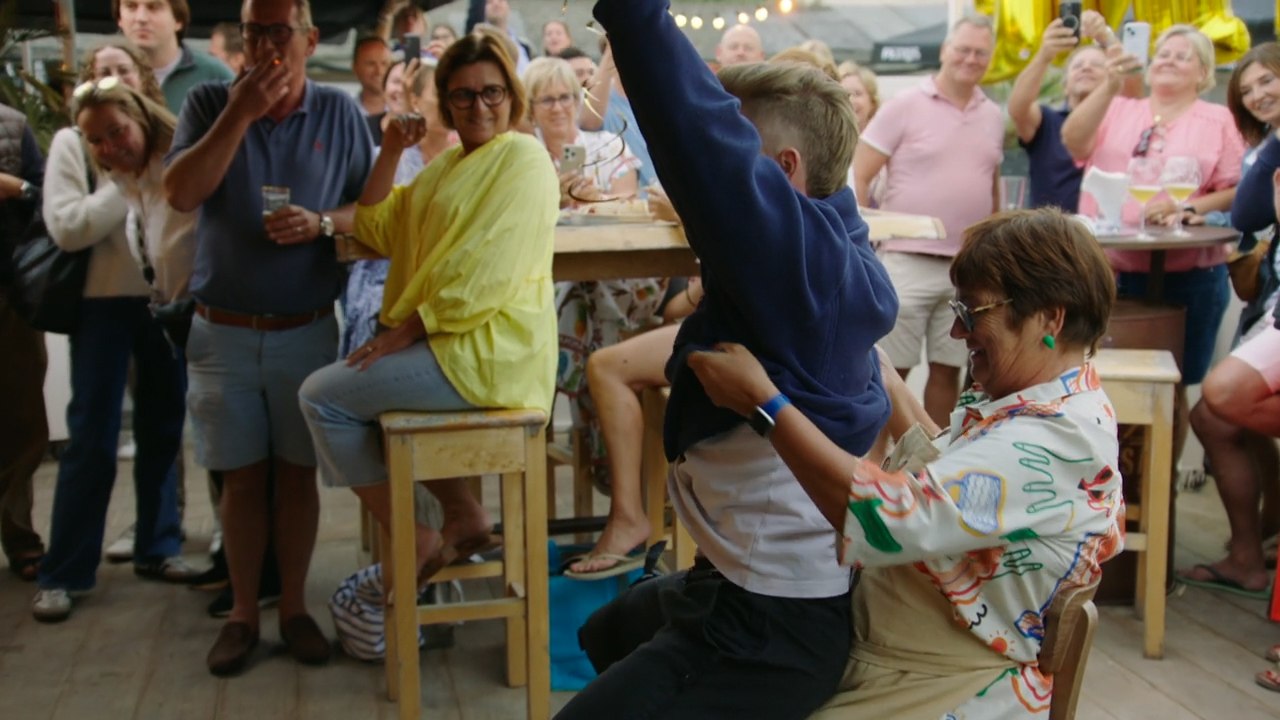 De sfeer zit meteen goed. Er wordt gelachen, wat traantjes weggepinkt en dan verrast Gert Martine. Hij brengt een eigen geschreven versie, speciaal voor haar, van Altijd.